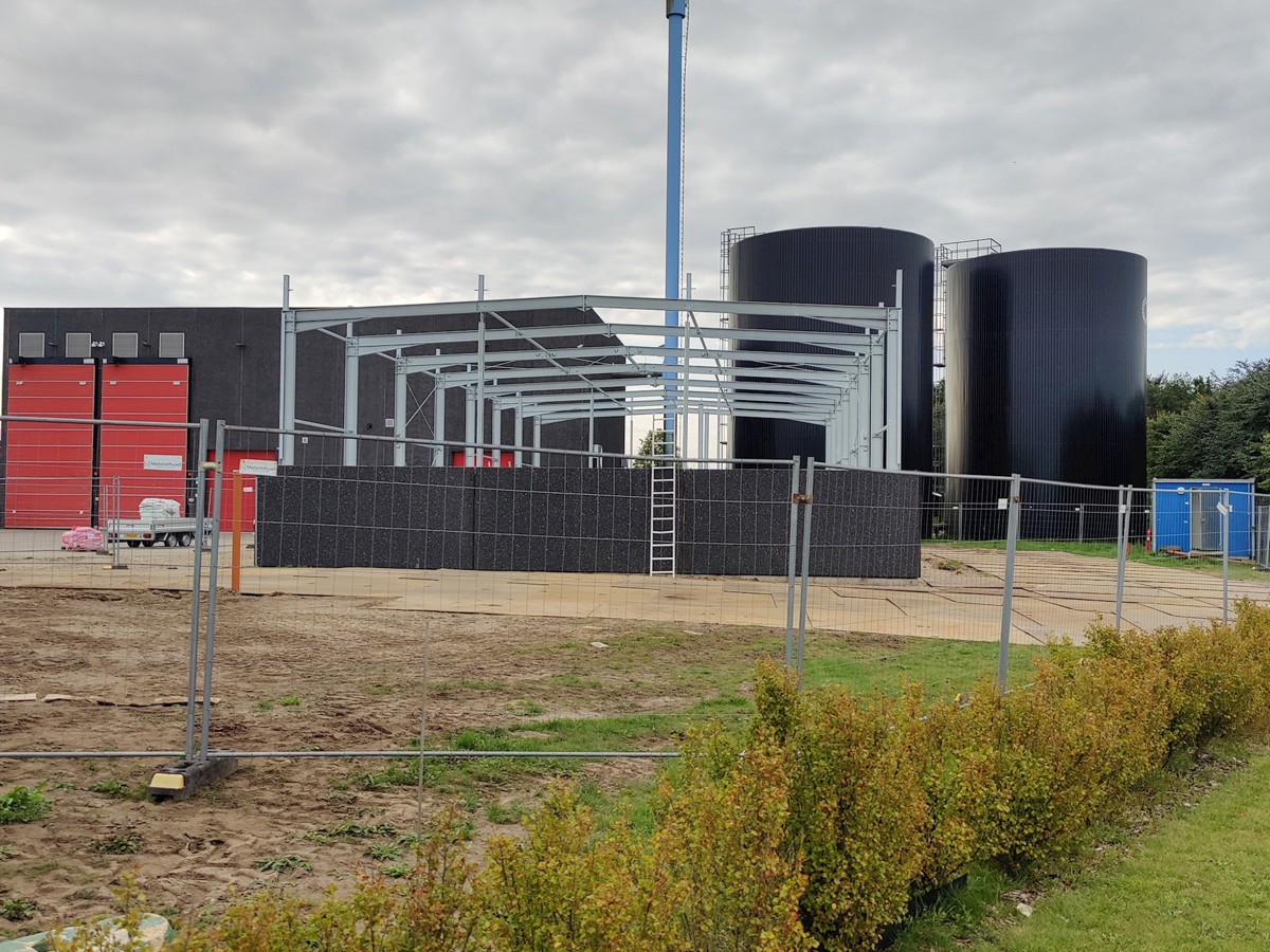 En ny kombibygning med værksted, lager og transmissionspumper har i den seneste tid taget form ved siden af flisværket på Lundagervej. Der var blevet for trangt i de gamle 80’er bygninger på Fasanvej, hvor der fremover bliver mere kontorplads.