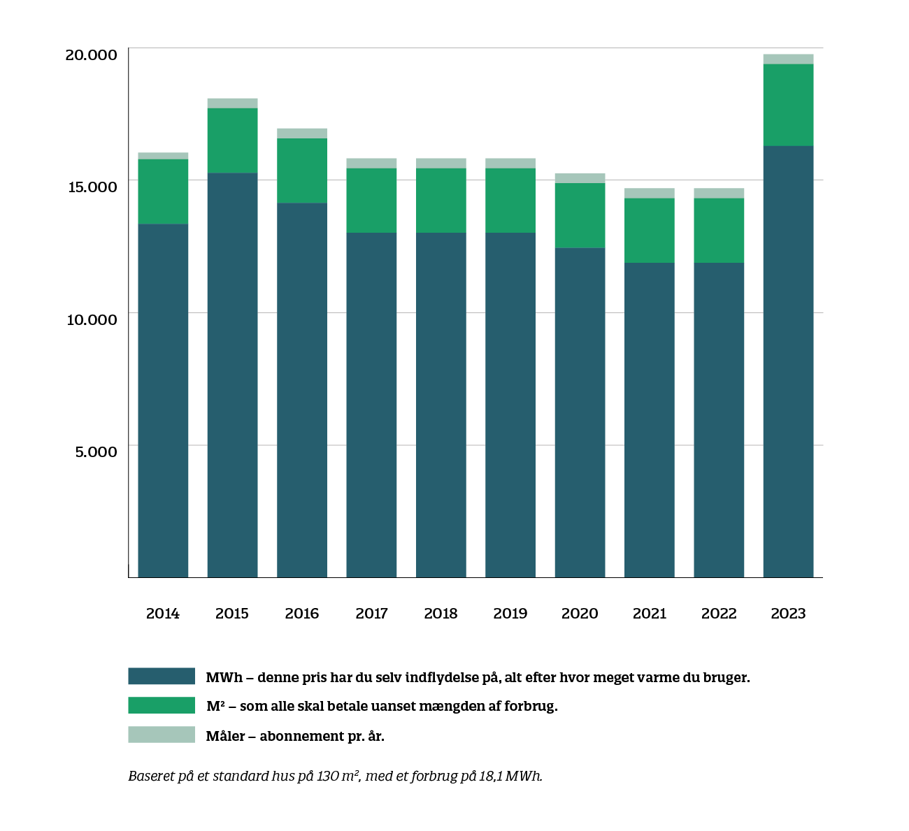Fra 2023 forventer vi en prisstigning på 34 procent. Vi er som varmeværk forpligtede til at varsle om en formodet prisstigning senest tre måneder før. Men i dette marked er det svært at spå om fremtidige priser. Vi kan derfor krydse fingre for, at prisen ikke bliver så høj som antaget.