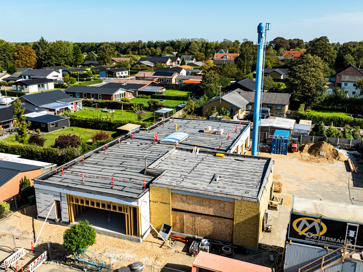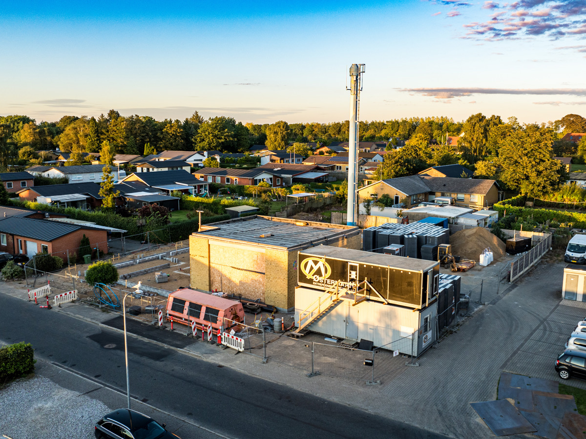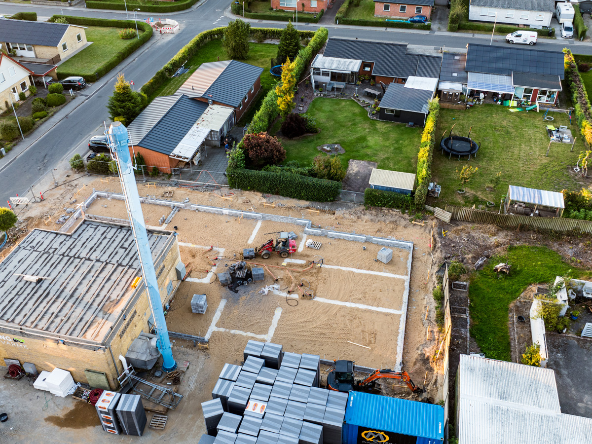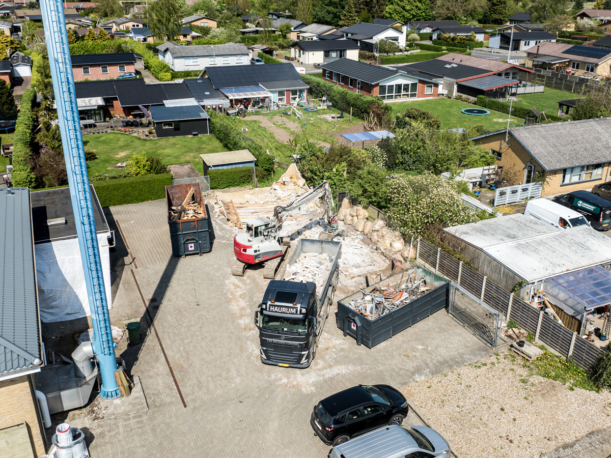 En ny administrationsbygning er ved at blive opført på Fasanvej 2 i Løsning. Vi har fulgt med i processen fra nedrivning til rejsegilde og deler her billeder fra projektets start til det sted, hvor vi er i dag.