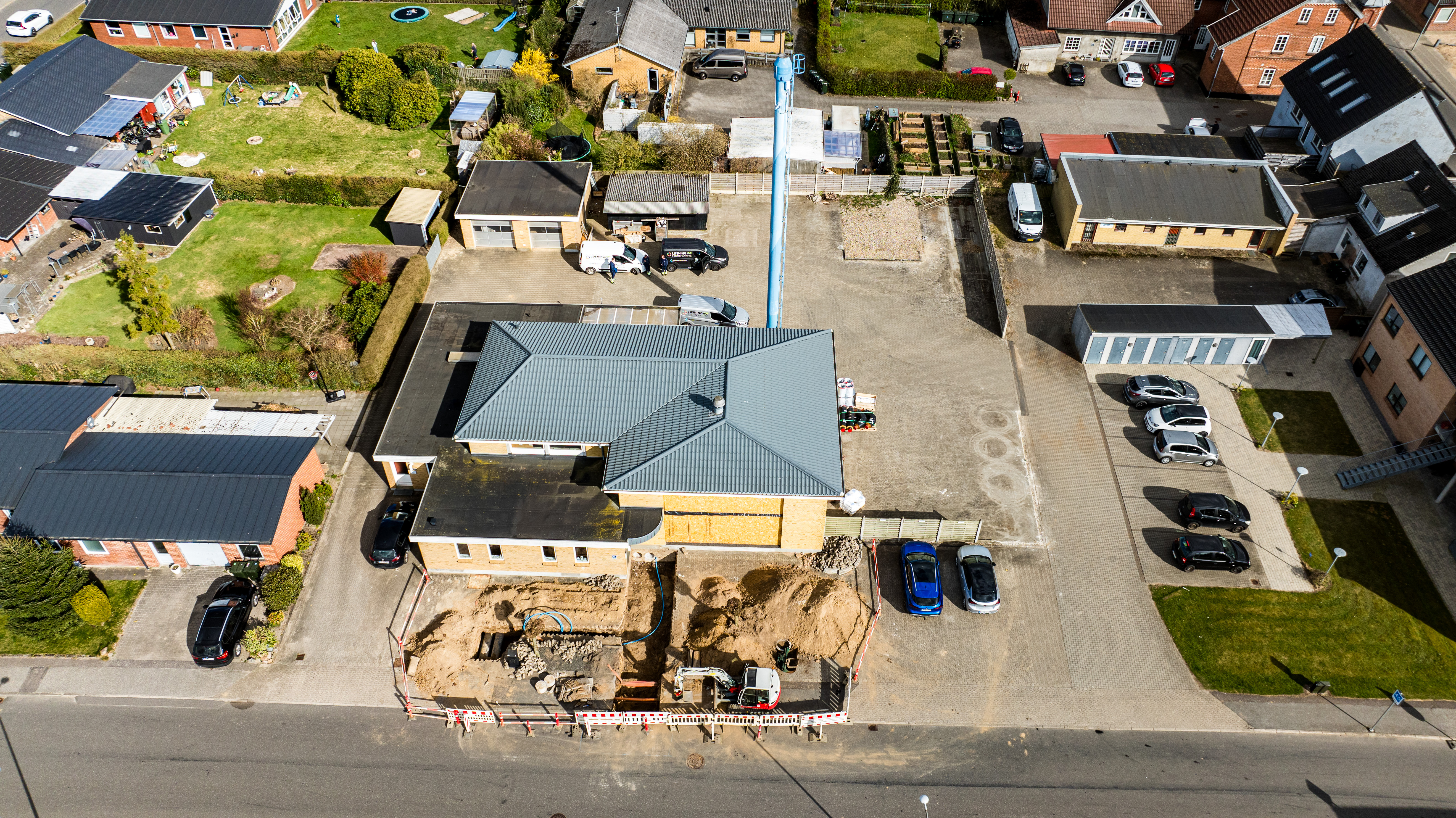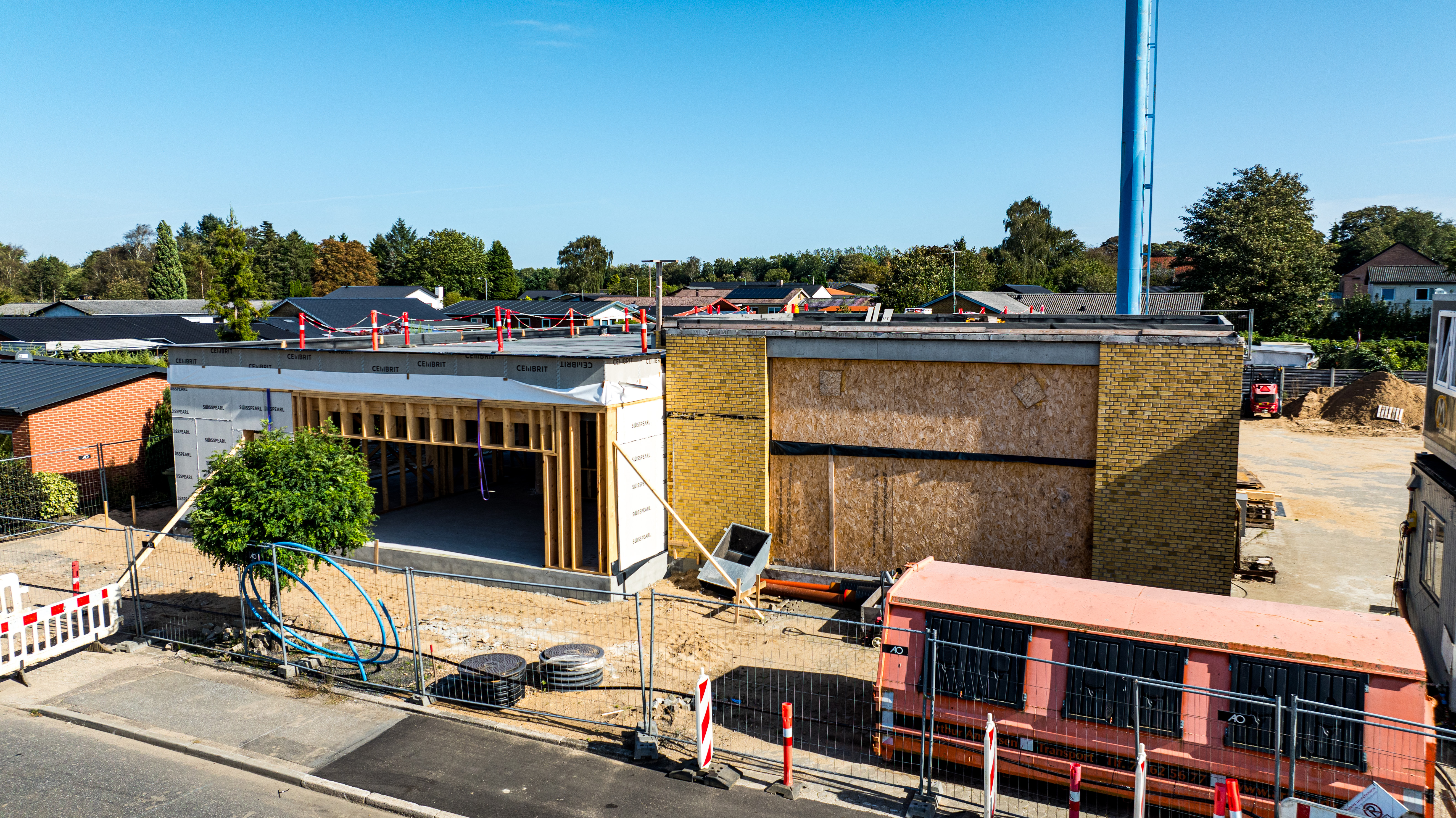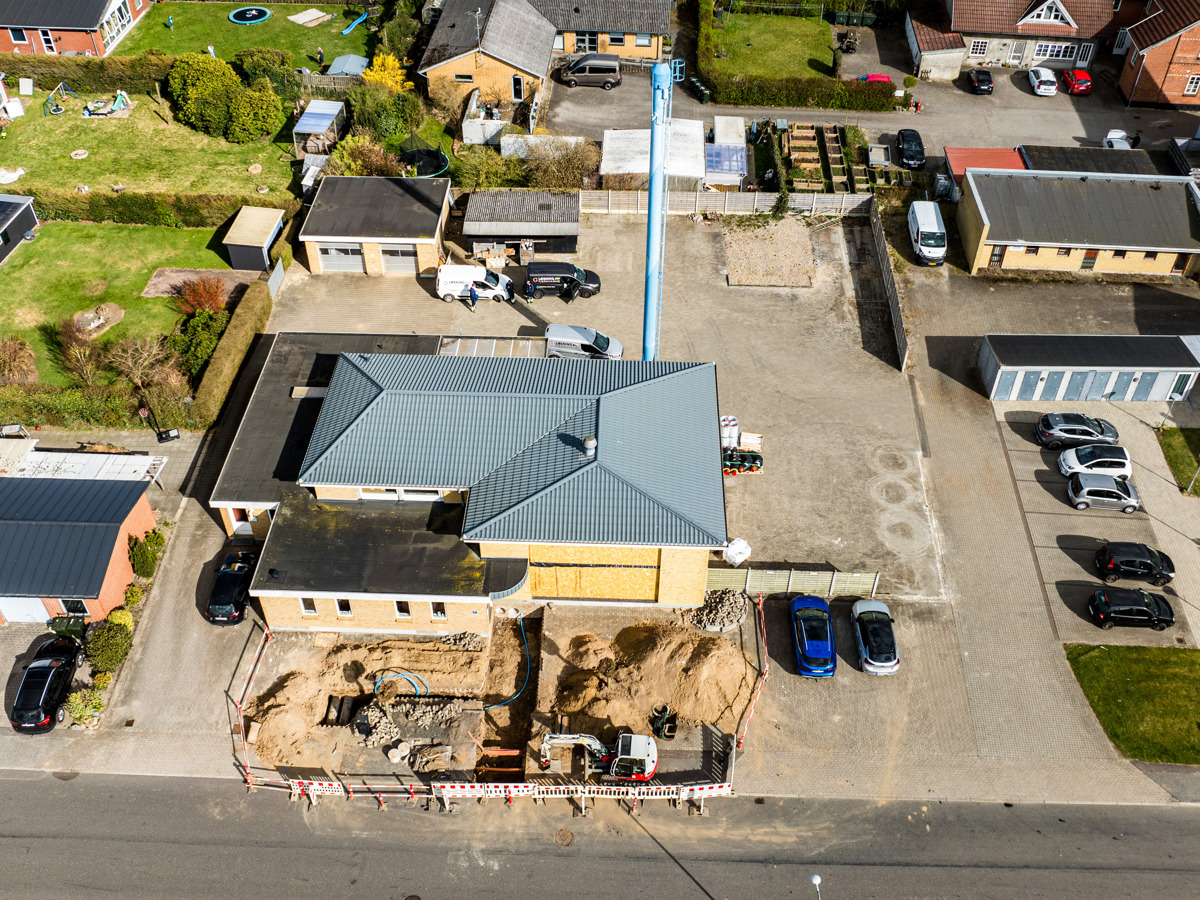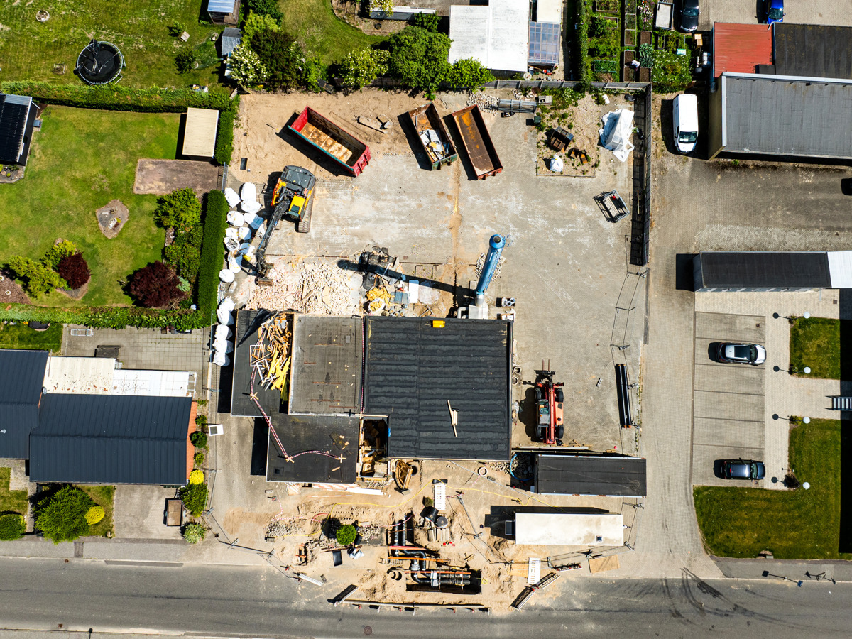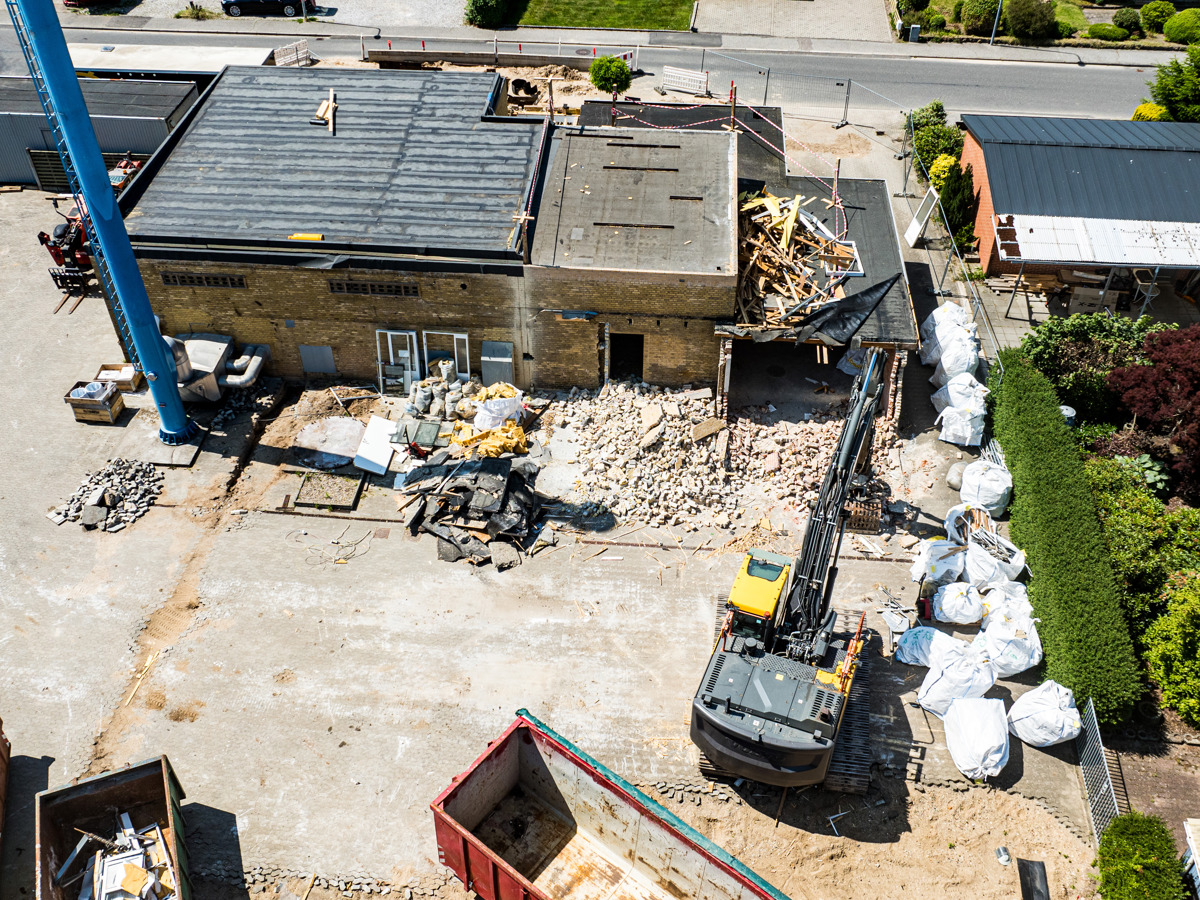En ny administrationsbygning er ved at blive opført på Fasanvej 2 i Løsning. Vi har fulgt med i processen fra nedrivning til rejsegilde og deler her billeder fra projektets start til det sted, hvor vi er i dag.