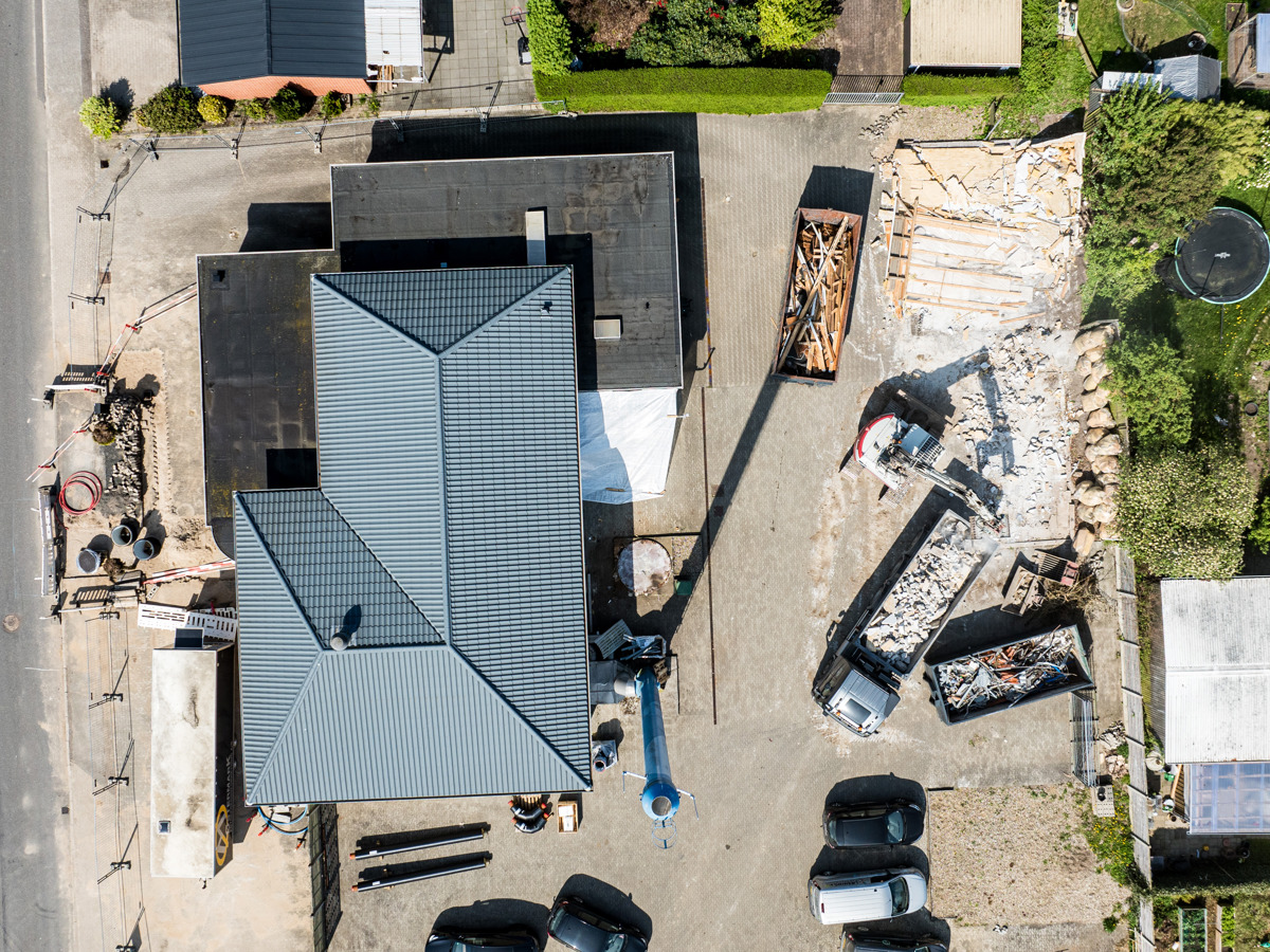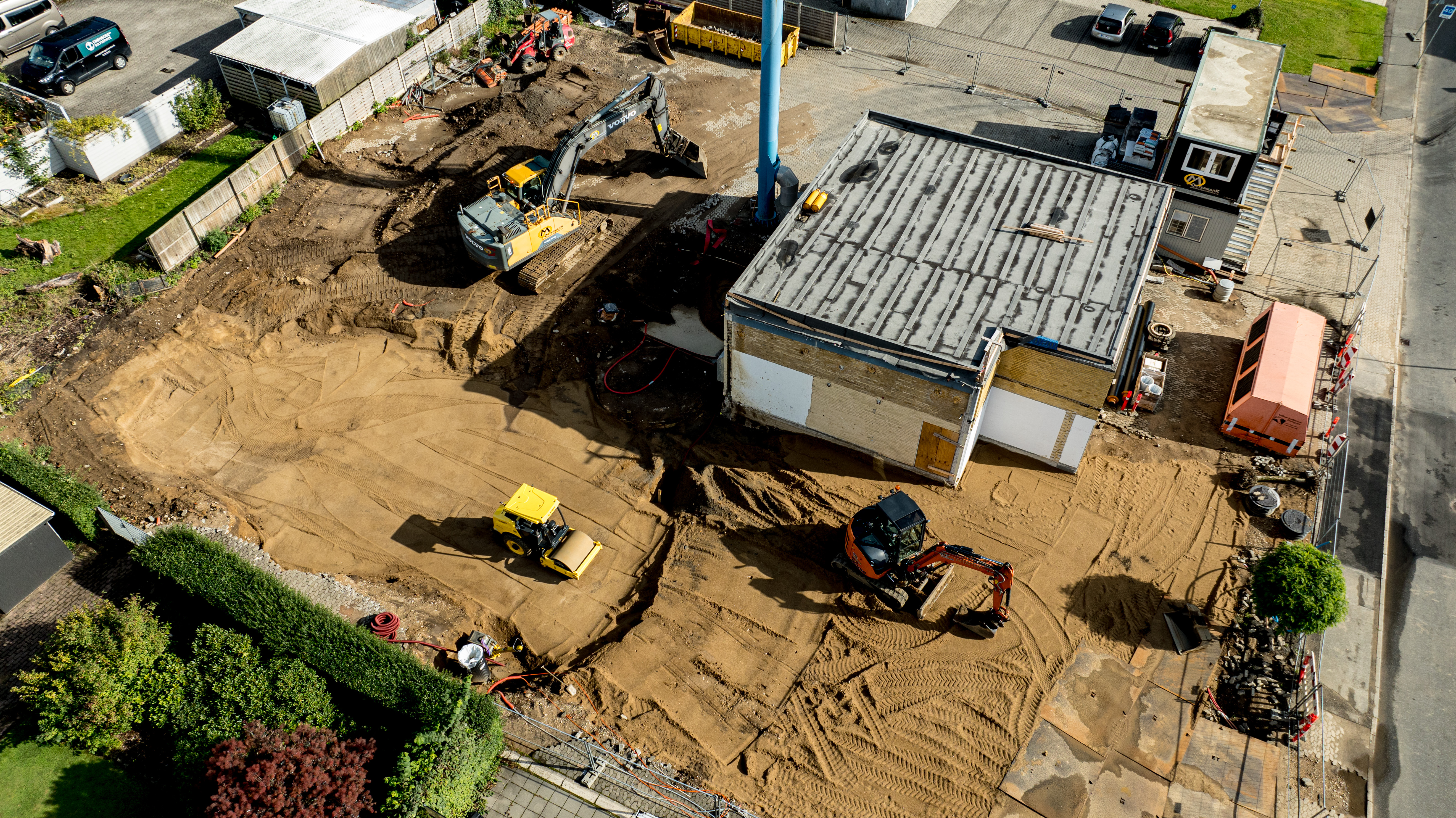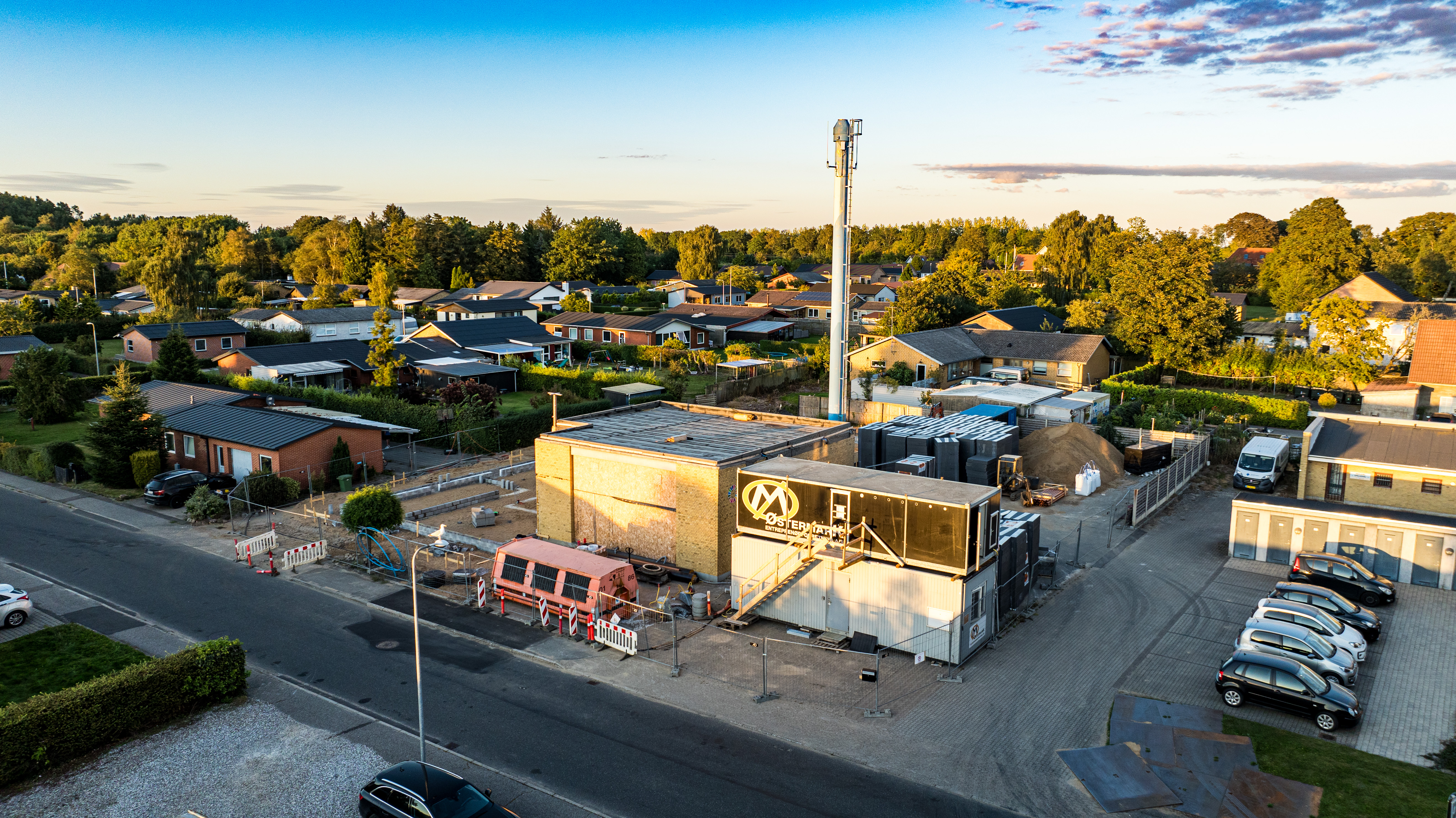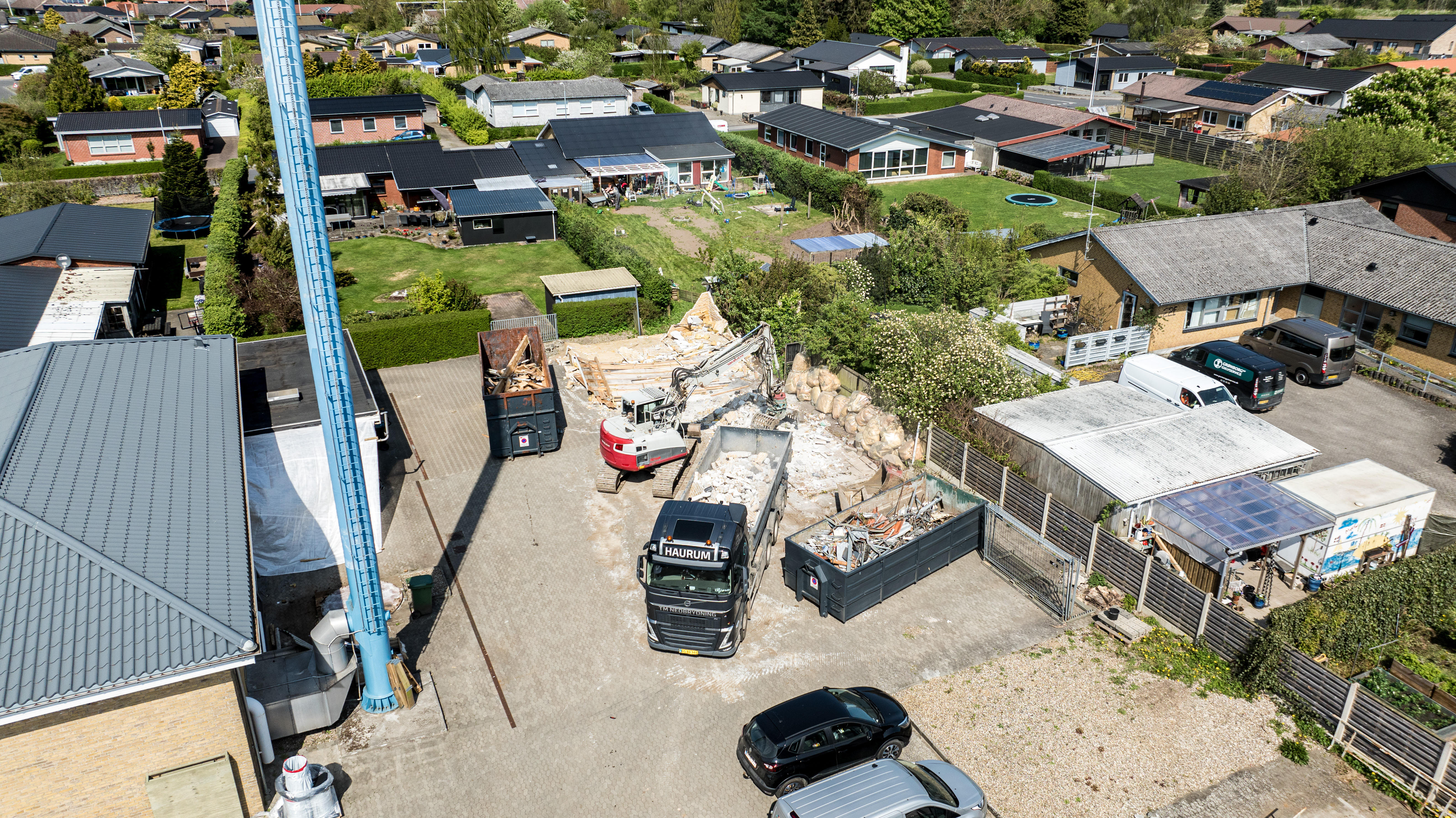 En ny administrationsbygning er ved at blive opført på Fasanvej 2 i Løsning. Vi har fulgt med i processen fra nedrivning til rejsegilde og deler her billeder fra projektets start til det sted, hvor vi er i dag.