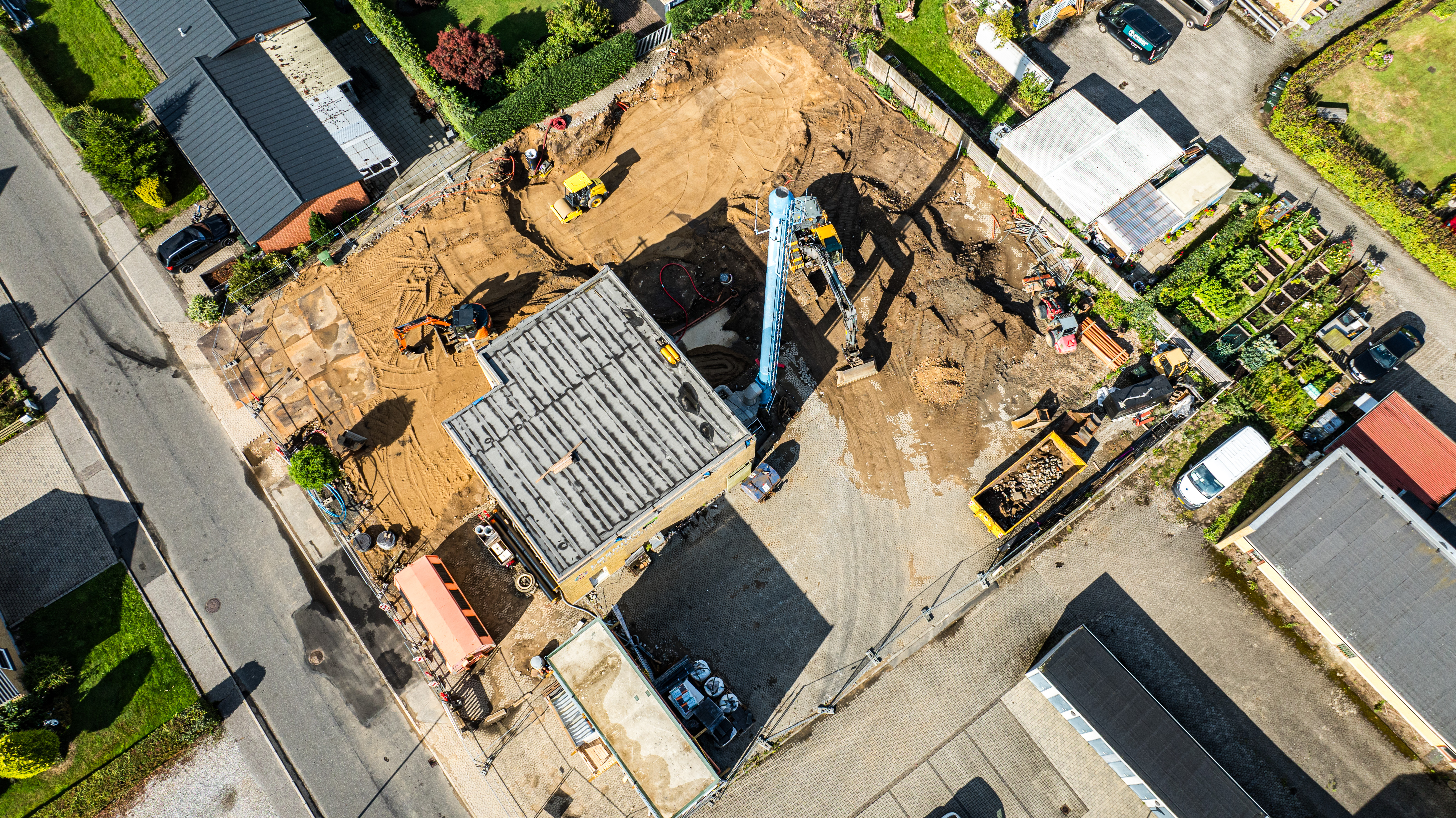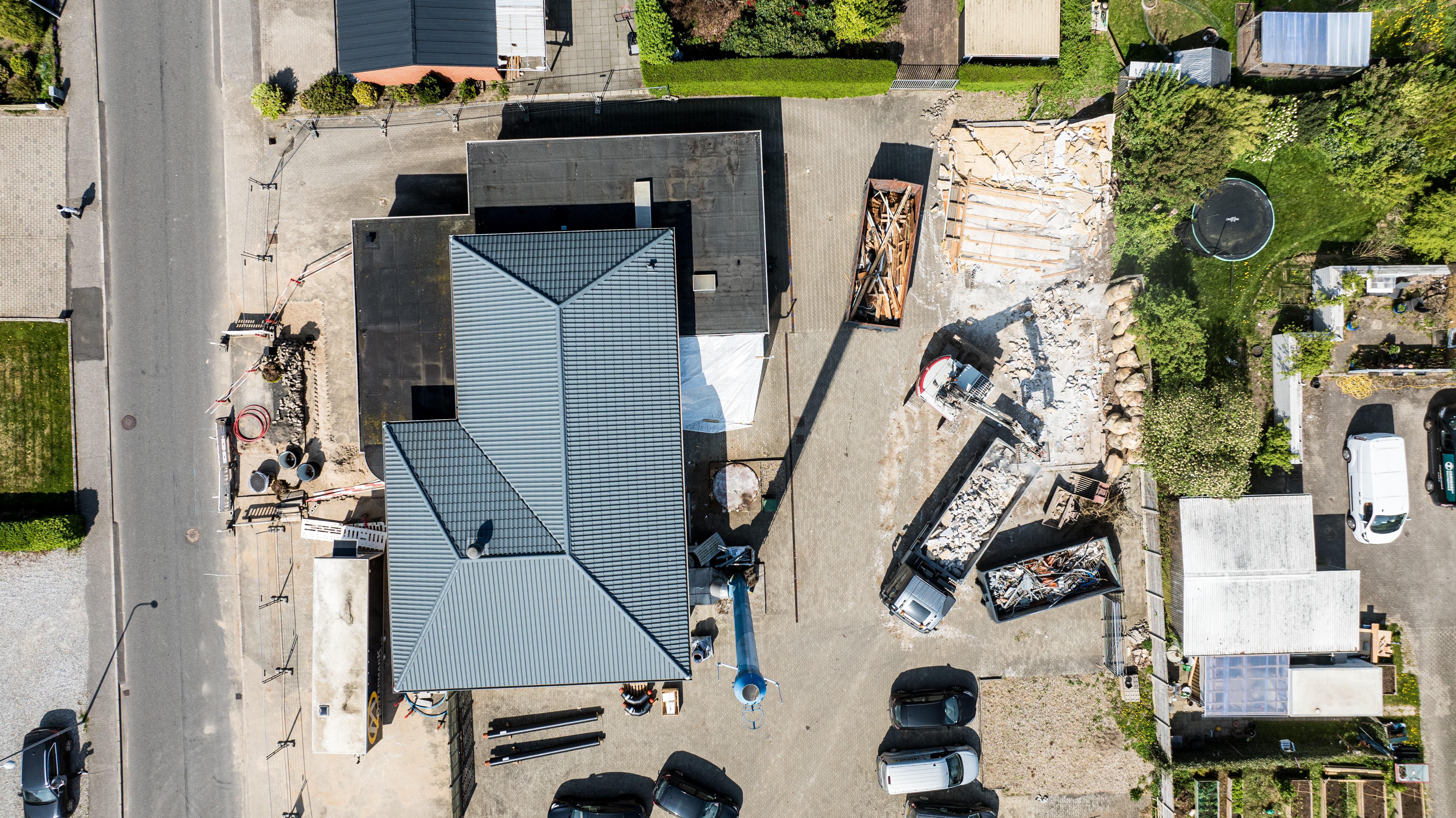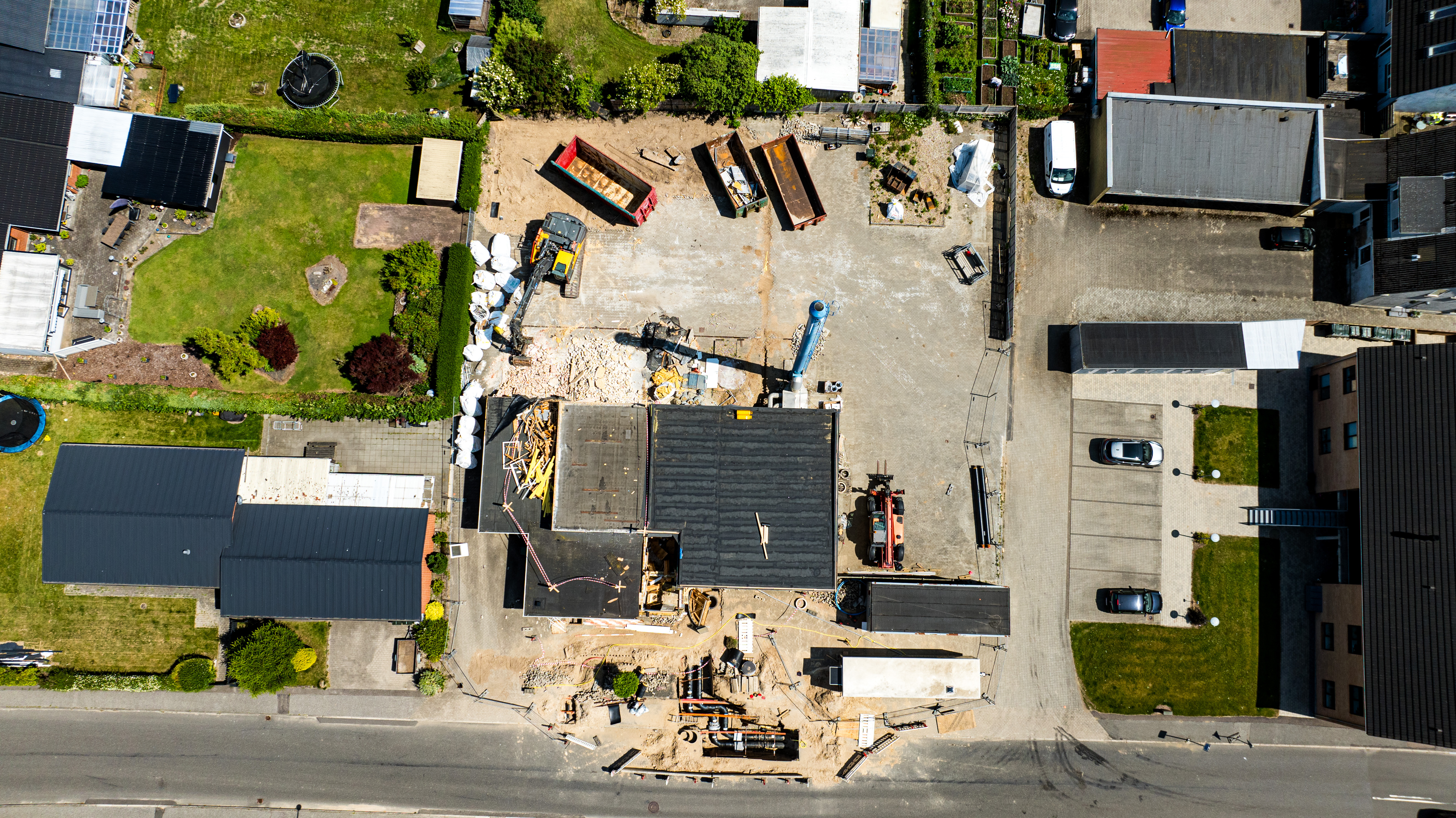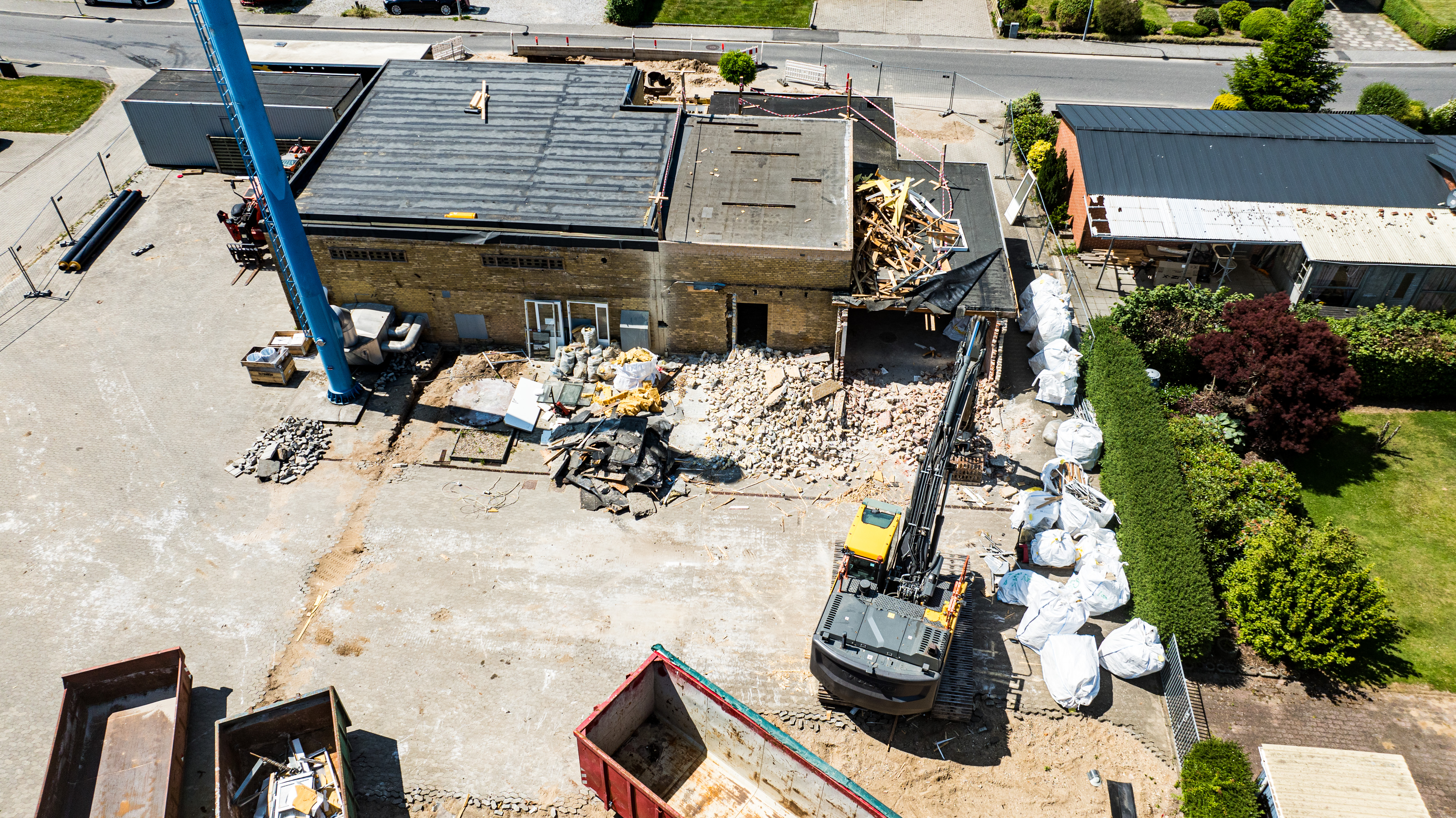 En ny administrationsbygning er ved at blive opført på Fasanvej 2 i Løsning. Vi har fulgt med i processen fra nedrivning til rejsegilde og deler her billeder fra projektets start til det sted, hvor vi er i dag.